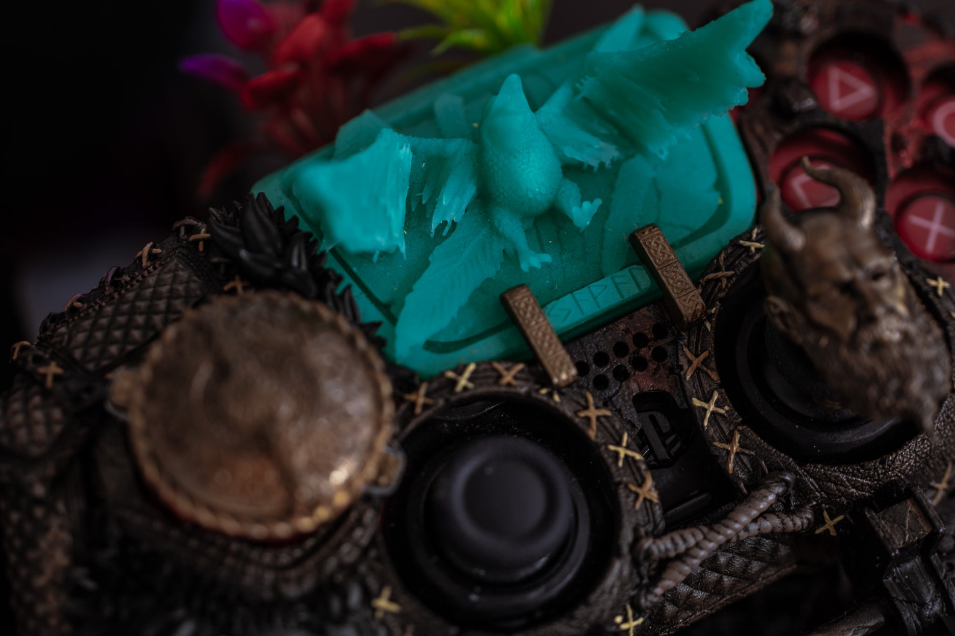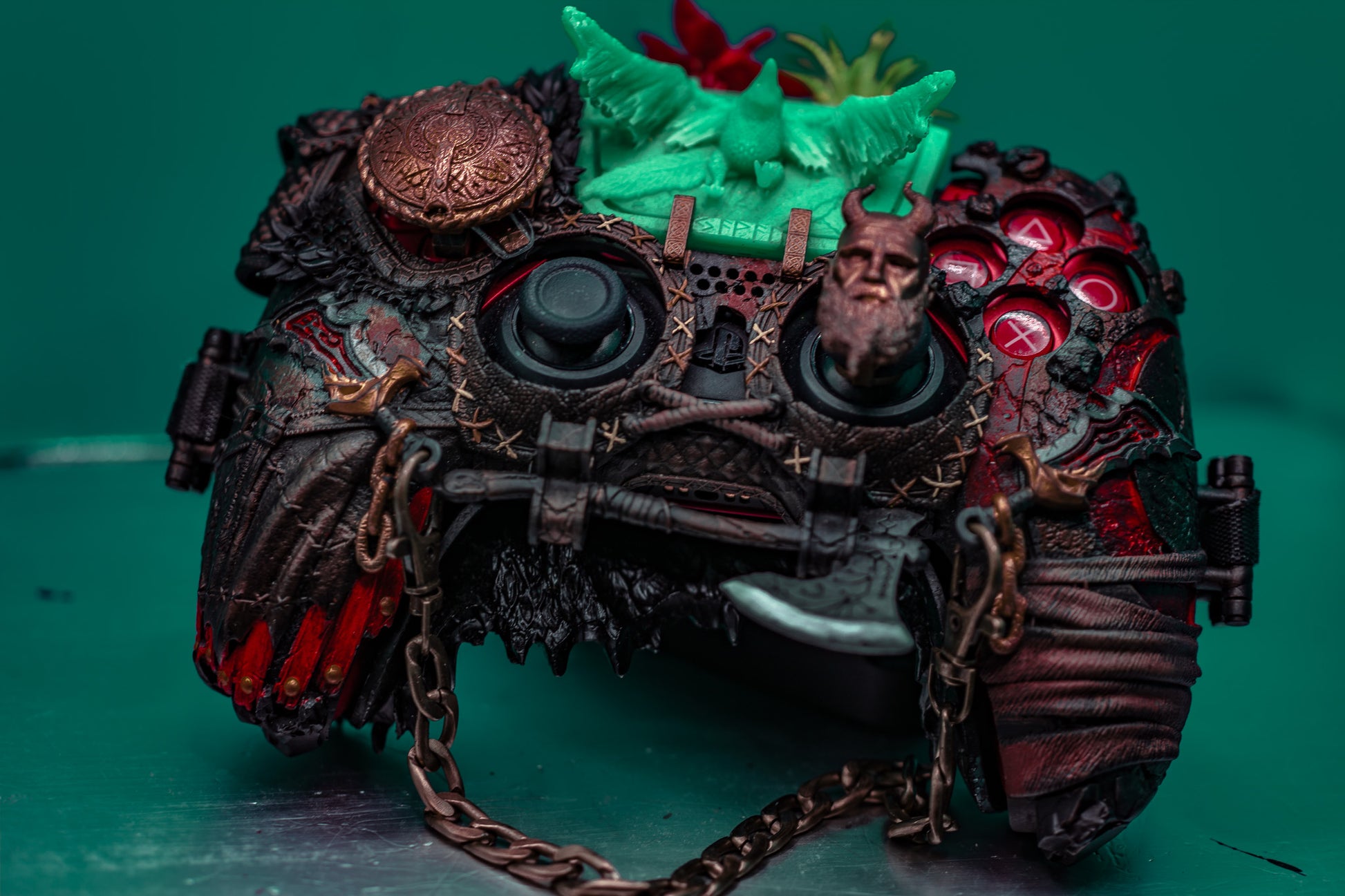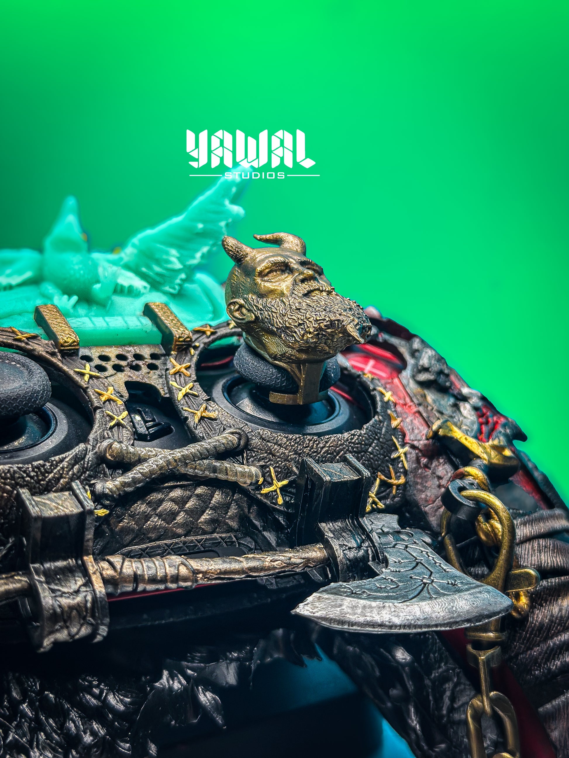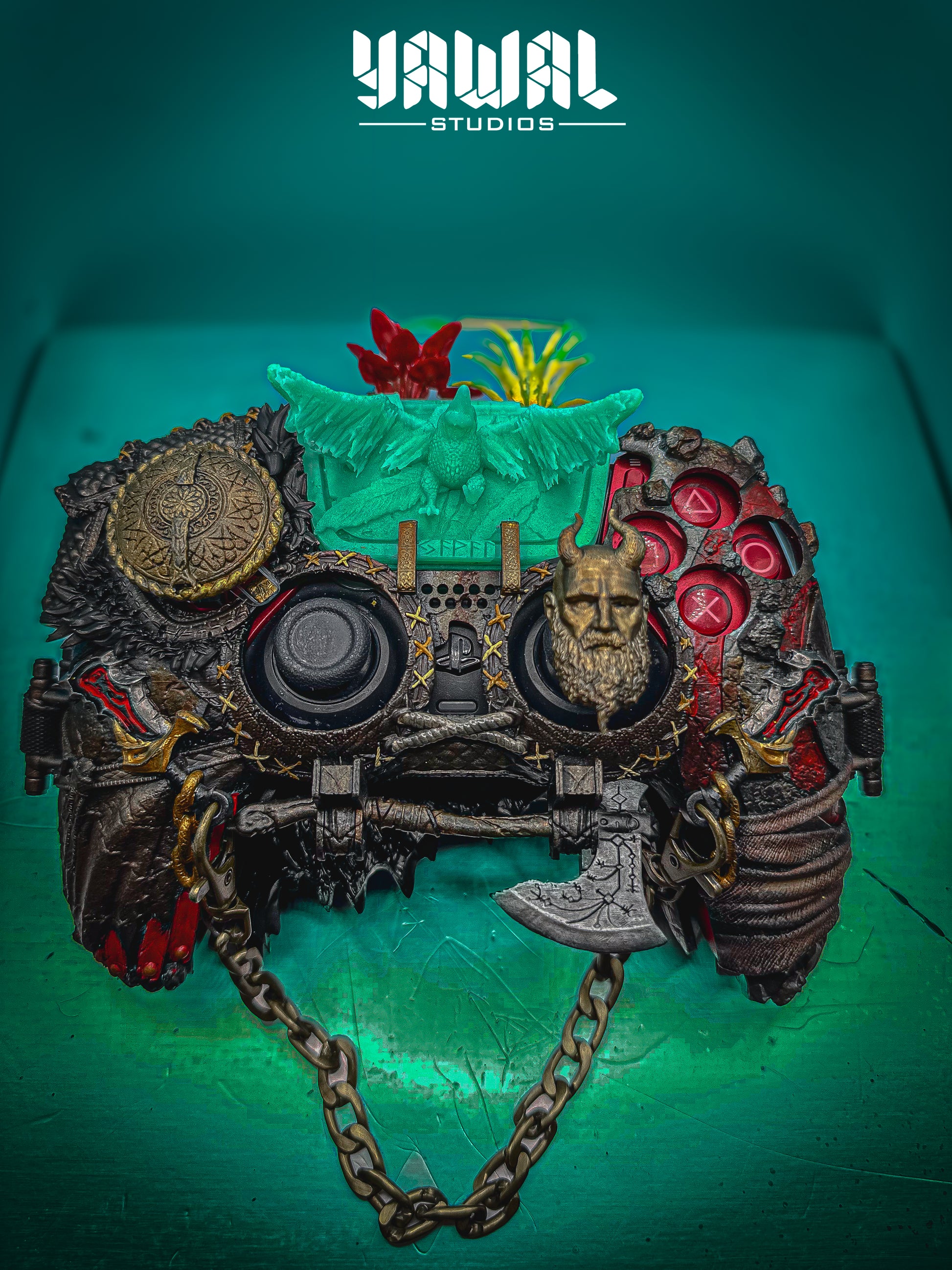 Level up your setup with this handcrafted God of War PS5 controller case by @yawalstudios. It glows in the dark with sunlight or the included UV lantern โ๏ธ๐ฆ, includes a custom joystick cover ๐ฎ, and keeps every button easy to reach and full joystick reach. Designed for comfort and immersive gameplay โ๏ธ
